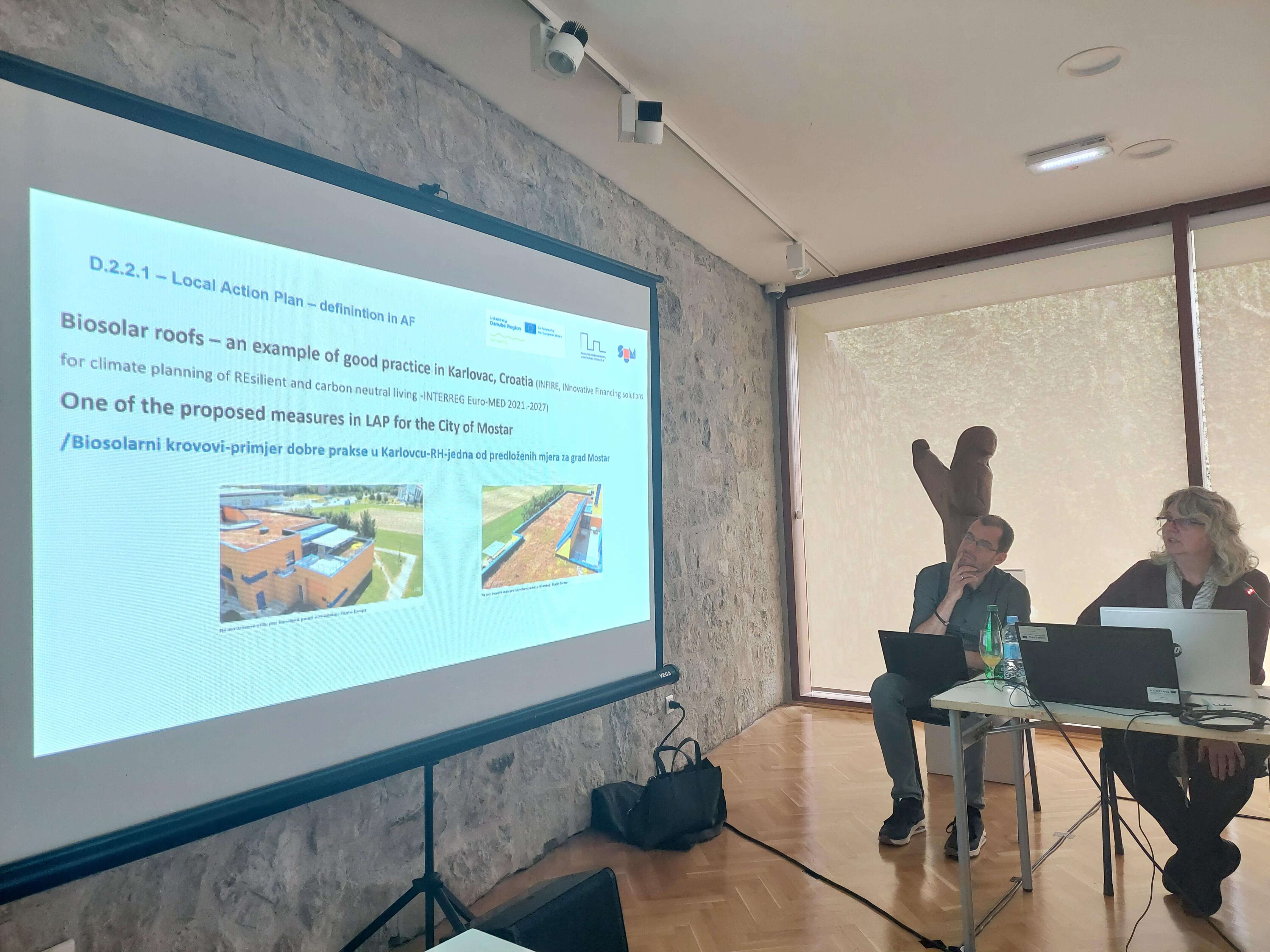 Voditeljica projekta ispred Sveučilišta u Mostaru i Fakulteta građevinarstva, arhitekture i geodezije (PP7) mr. sc. Tatjana Džeba predstavila je moguća rješenja za Mostar usklađena sa Strategijom razvoja Grada Mostara i ukazala na pozitivne primjere i prakse koje mogu značajno doprinijeti unapređenju zelenih politika i održivom razvoju grada. Na sastanku su aktivno sudjelovali i ostali članovi radnog tima: prof. dr. sc. Maja Prskalo, doc. dr. sc. Valerija Kopilaš i doc. dr. sc. Anton Vrdoljak.