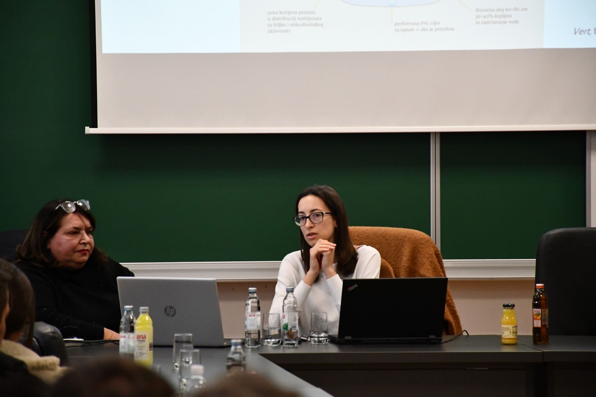 Predavanje se bavilo konceptom rješenja odvodnje oborinskih i površinskih voda urbanih sredina temeljenih na prirodi jer utjelovljuju nove načine pristupa socio-ekološkoj prilagodbi i otpornosti klimatskim promjenama s jednakim oslanjanjem na društvenu, ekološku i ekonomsku domenu.