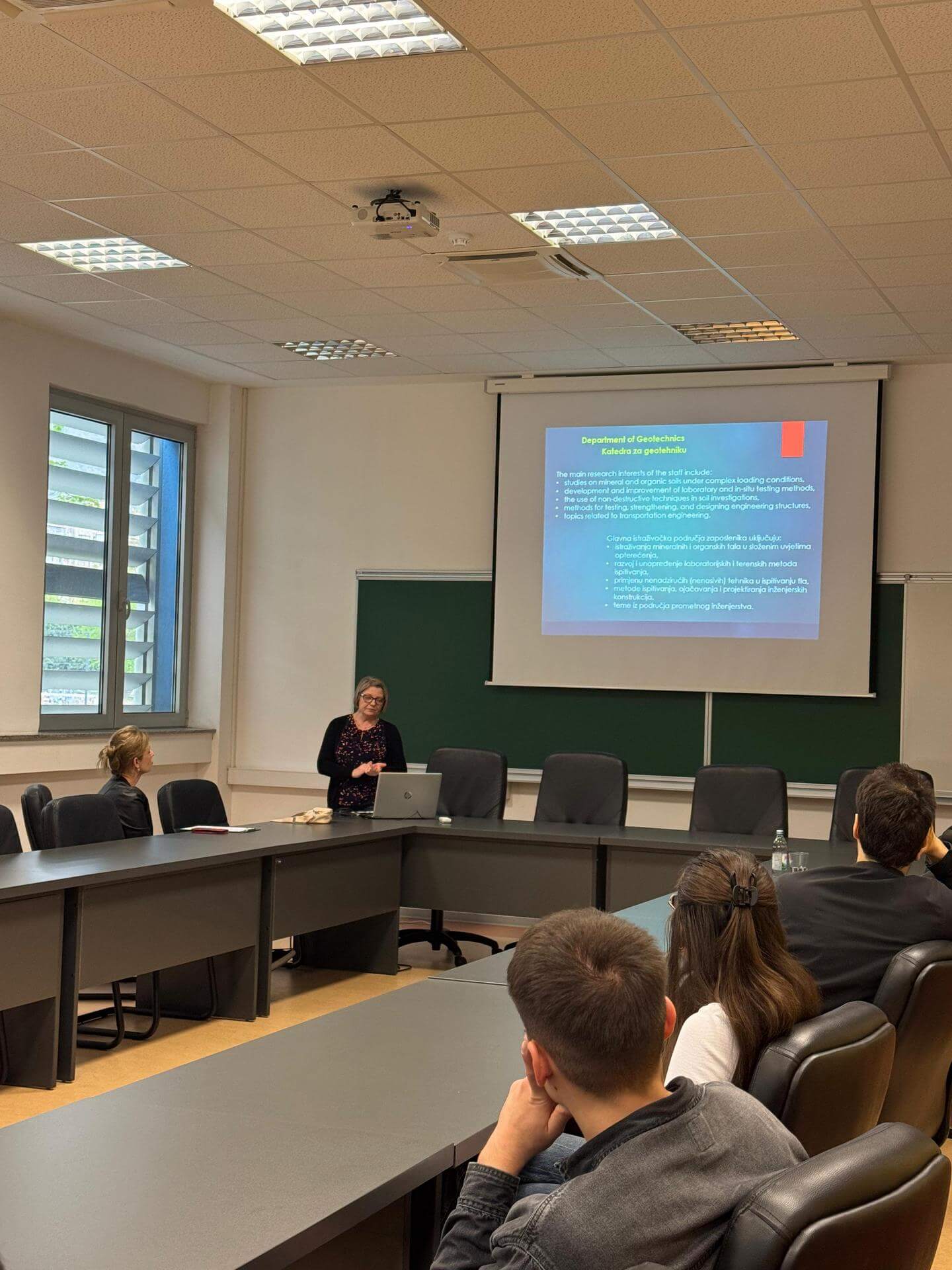 U utorak 14. travnja 2026. u Vijećnici Fakulteta građevinarstva, arhitekture i geodezije Sveučilišta u Mostaru održan je ZNANSTVENI SAT na temu Geotechnical and environmental characterization of unbound mixtures of recycled concrete aggregate and shredded car tires. Predavanje je održala prof. dr. sc. Katarzyna Gabryś s Odjela za geotehniku pri Institutu za građevinarstvo sveučilišta SGGW (Warsaw University of Life Sciences). Tema Znanstvenog sata odnosila se na znanstveno-istraživački projekt koji se radi pod OPUS programom i koji je financiran od strane Nacionalnog znanstvenog centra u Poljskoj. Predstavljeni su osnovni ciljevi projekta, istraživački tim, međunarodni partneri, metodologija, plan istraživanja, kao i istraživanja koja su u tijeku. U sklopu Znanstvenog sata predavanje je održala i prof. dr. sc. Katarzyna Markowska-Lech, također s Odjela za geotehniku pri Institutu za građevinarstvo sveučilišta SGGW (Warsaw University of Life Sciences), na temu “The structure and scientific activity of the Faculty of Civil and Environmental Engineering at the Warsaw University of Life Sciences (SGGW)".